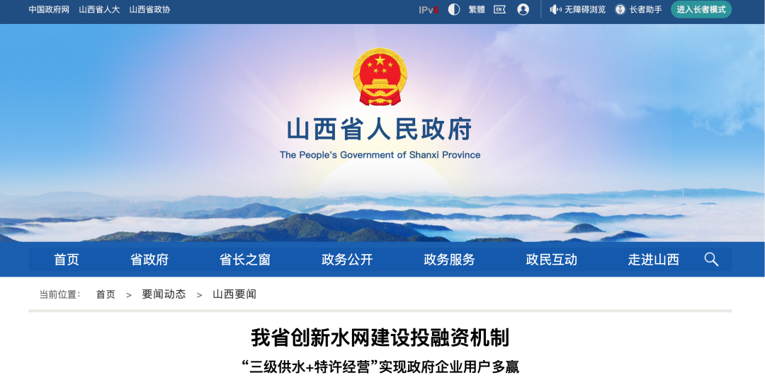 山西省:创新水网建设投融资机制 “三级供水 特许经营”实现政府企业用户多赢